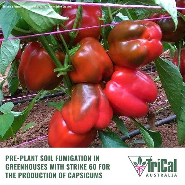 A greenhouse capsicum trial on the Adelaide Plains evaluated the effectiveness of pre-plant soil fumigation with Strike 60 for managing Root Knot Nematodes and improving crop performance. Weekly soil testing was conducted to measure nematode suppression and crop response under controlled greenhouse conditions.